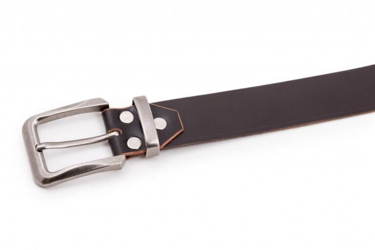 Handmade studded brown leather belt. The alpine cow leather with a thickness of around 2 mm is distinguished by greater stiffness and is tanned in Italy or Germany using one of the oldest leather tanning methods – vegetable tanning. Colored leather is chrome tanned. The leather belt is furnished with a cradle saddle buckle and is suitable for all occasions, including the most formal.