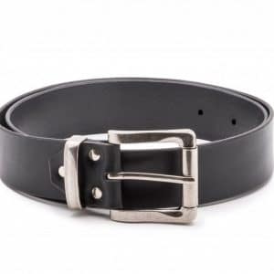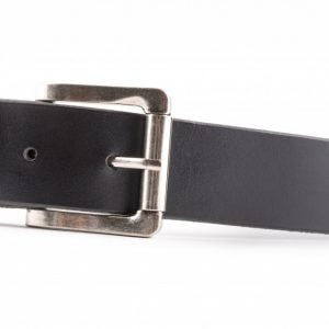 Handmade studded black leather belt. The alpine cow leather with a thickness of around 2 mm is distinguished by greater stiffness and is tanned in Italy or Germany using one of the oldest leather tanning methods – vegetable tanning. Colored leather is chrome tanned. The leather belt is furnished with a cradle saddle buckle and is suitable for all occasions, including the most formal.