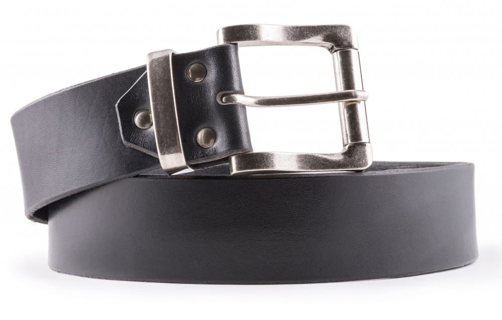 Single-layer black leather belt