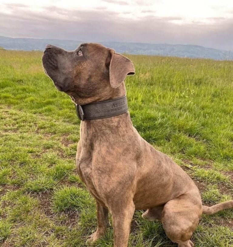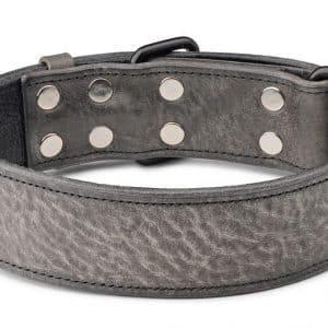 The favorite collar Glauce has gotten its successor. Its sufficient strength and durability make this collar a fantastic choice for medium and large dogs. Two machine-stitched layers of cow leather have a thickness of approx. 5 mm, the durability of the entire collar is secured by firm rivets. The trendy grey dog collar comes with the black hardware (the rolled buckle and the D-ring), everything including the color of the thread can be adjusted to your liking nevertheless.